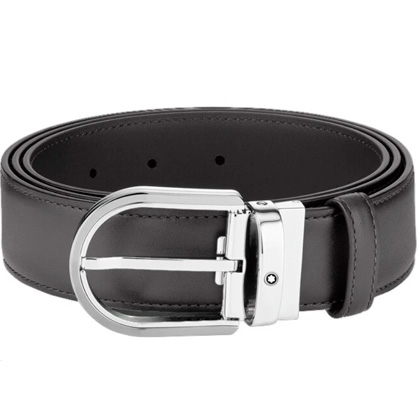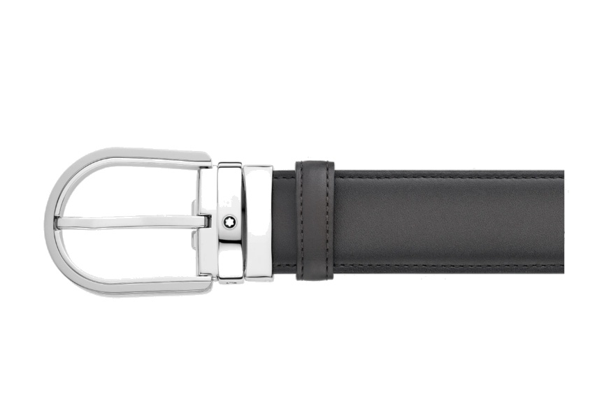 Кожаный ремень с пряжкой в форме подковы серого цвета 35 мм от магазина премиальных ручек Premium Pens в Батайске.